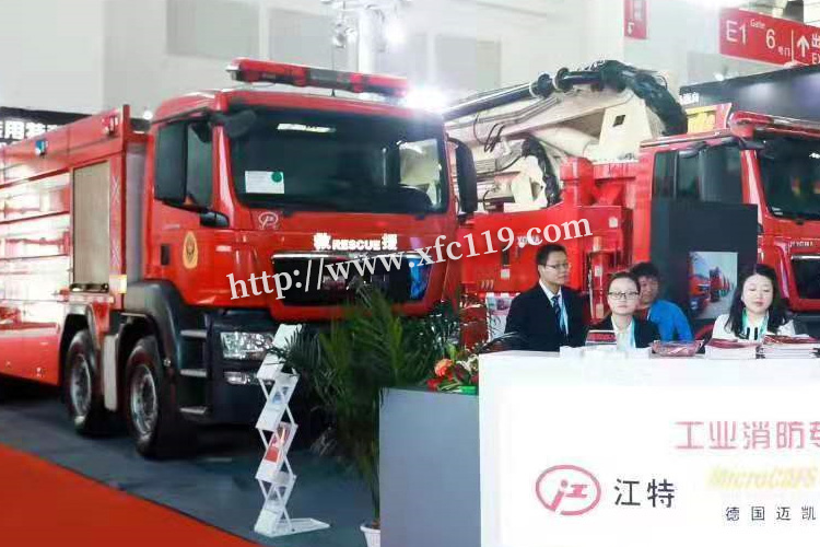 这次我公司湖北江南专用特种汽车有限公司参展的产品是由我公司单独研发的高端城市主战消防车,公告名称压缩空气泡沫消防车。