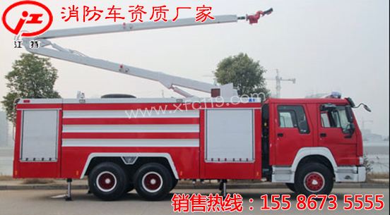 ※ 我公司举高喷射消防车产品有:重汽豪沃双桥16-20米(8-12吨)消防车等。