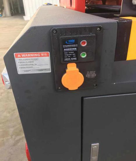 5.10自动分离式充电充气装置:自动充电充气装置采用用苏州怡达新能源科技有限公司YD-SES30A型自动脱离充电充气系统,由自动绕线器提供的220V电源,通过分离式弹性插头给车辆供电供气,当电瓶充满、储气罐压力达到设定值后系统自动停止工作,当需要出动车辆时,驾驶员只需打开启动钥匙,车辆启动时分离式弹性插头自动与车辆充电充气接口分离,当出现异常情况不能自动分离时,会发出声光报警提醒驾驶员查看故障或手动分离,达到快速出动车辆的目的。